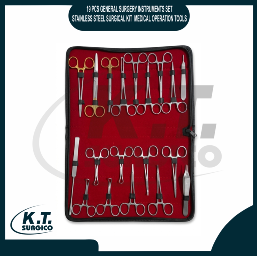 19 Pcs General Surgery Instruments Set Stainless Steel Surgical Kit – Medical Operation Tools